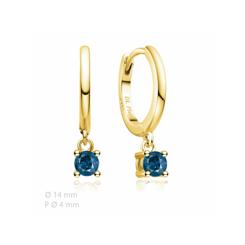 Aro fabricado en plata de ley con un baño de oro de 18 kilates. Su tamaño pequeño de 1cm. de diámetro lo hace muy versátil para combinar con otros pendientes o llevarlo solo. El toque de la piedra azul en forma de colgante le aporta mucha ligereza.