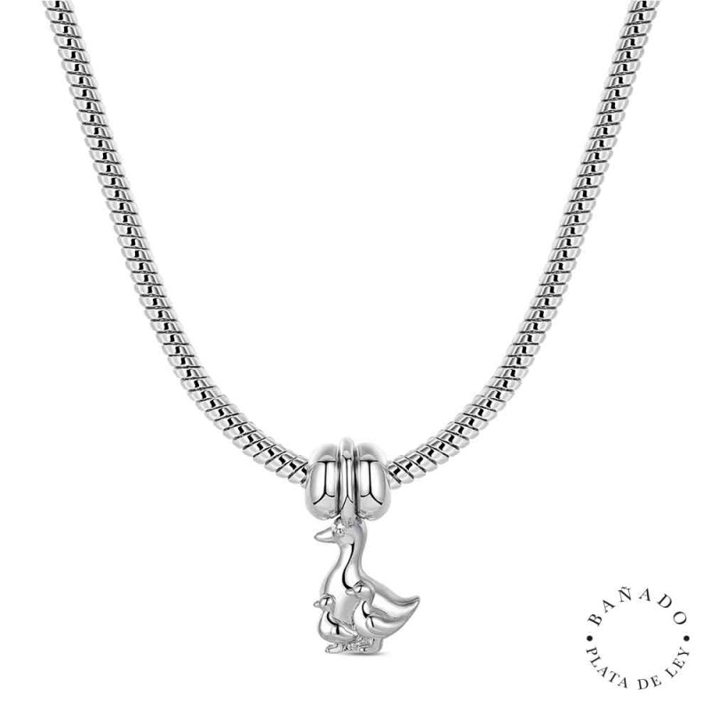 Sorprende a mamá con este collar de metal bañado en plata. Con colgante de mamá pata y dos patitos adornados con circonitas.