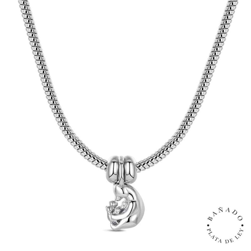 Este collar de metal bañado en plata de ley es perfecto para el día de la Madre. Con colgante de mamá osa y sito.
