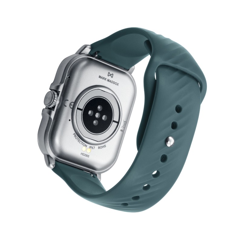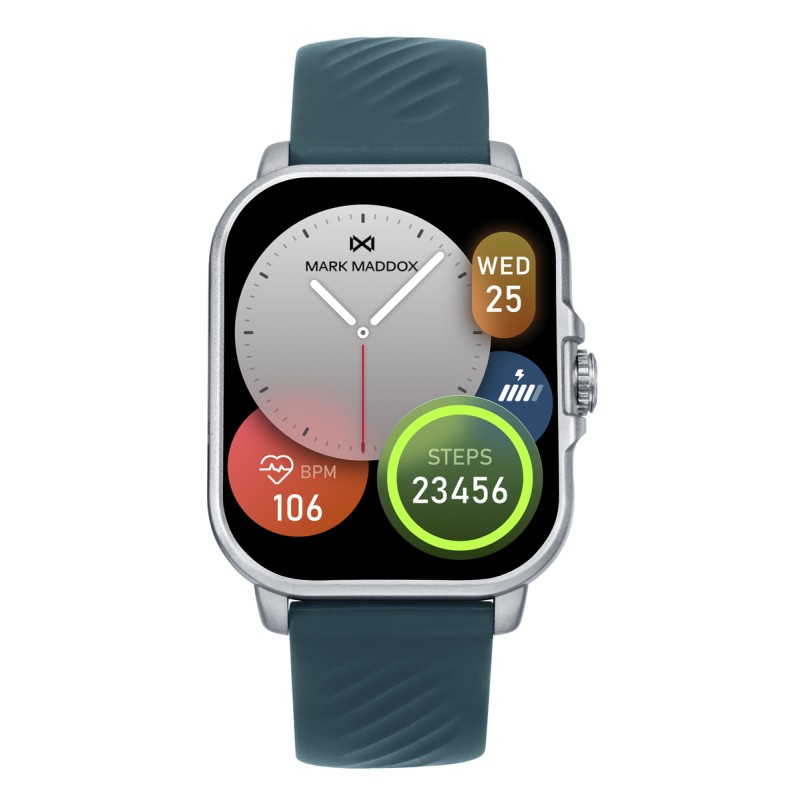 Un Smartwatch Mark Maddox SmartNow perfecto para quienes buscan estilo, tecnología y funcionalidad en un solo dispositivo. Con una moderna caja de policarbonato en color plata y una correa de silicona verde que aporta frescura y comodidad, este reloj está diseñado para complementar tu ritmo de vida activo y dinámico. Equipado con una pantalla táctil intuitiva, este smartwatch es compatible con teléfonos Android 11 o superior e iOS 12 o superior. Sus avanzadas funciones incluyen la capacidad de realizar y recibir llamadas, gestionar notificaciones y mensajes, y monitorear tu salud con herramientas como el medidor de oxígeno en sangre, contador de pasos, seguimiento de distancia recorrida y análisis de calidad del sueño.