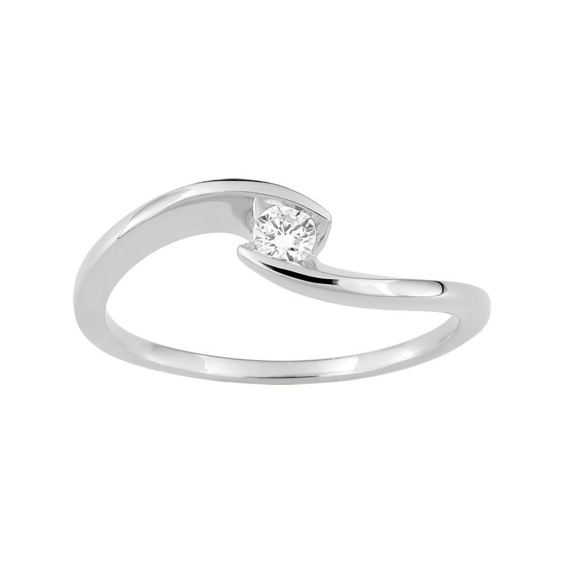 Anillo solitario fabricado en oro blanco de 9 kilates con un preciosos brillante. Ideal para acompañar con tu alianza de boda.
