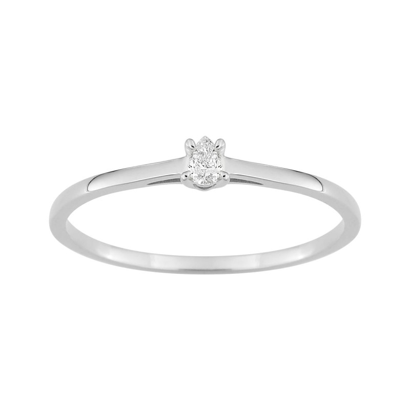Anillo solitario fabricado en oro blanco de 9 kilates con un preciosos brillante. Ideal para acompañar con tu alianza de boda.