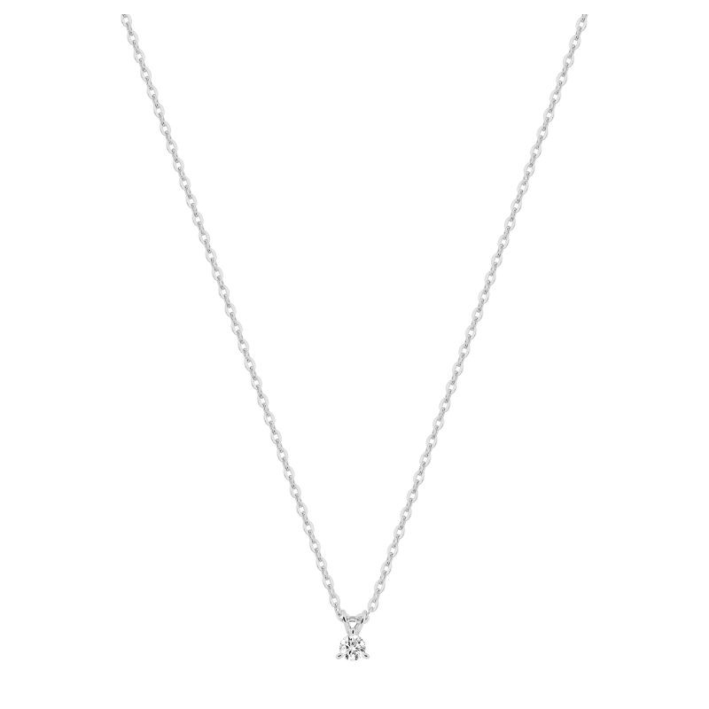 Elegante gargantilla fabricada en oro blanco 9kilates, con un colgante con brillante. Su tamaño pequeño y delicado la hacen muy elegante y versatil para cualquier ocasión.
